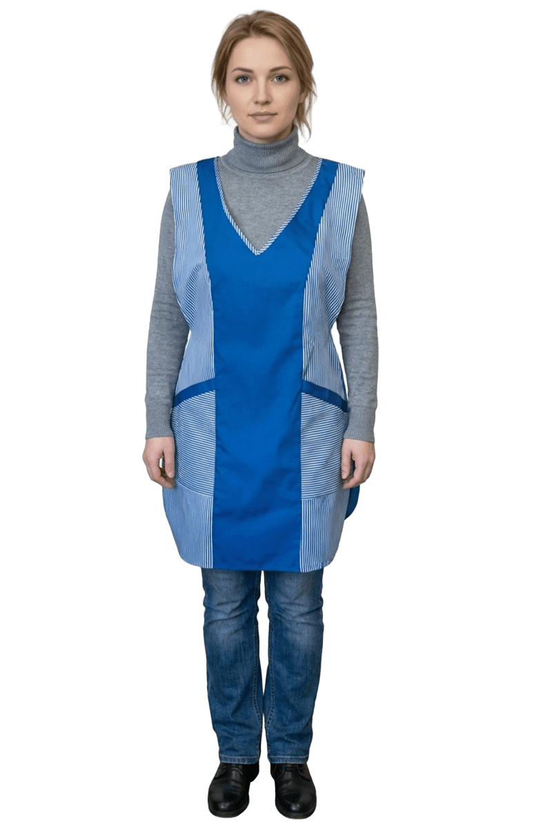 - Удобство: благодаря туникообразной форме, фартук обеспечивает свободу движений и комфорт при носке.