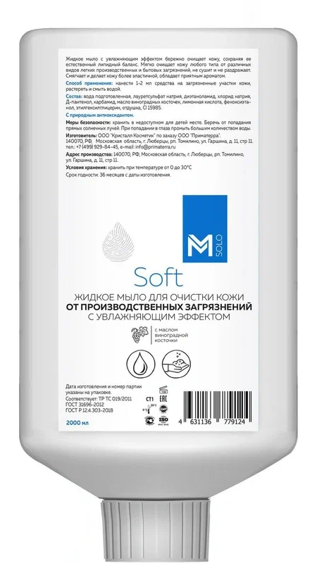 - Способ применения: нанести 1–2 мл средства на загрязнённые участки кожи, растереть и смыть водой.