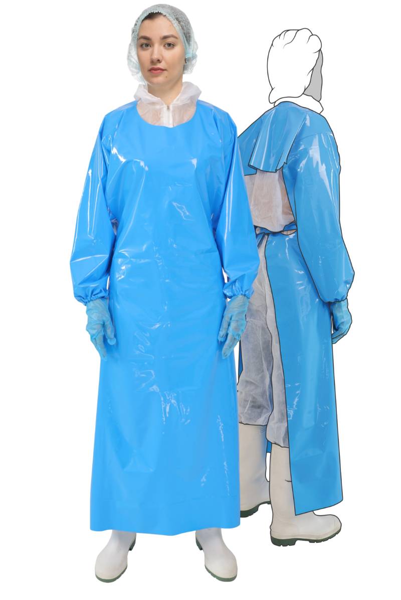 Фартук HACCPER Uretex предназначен для защиты от различных производственных загрязнений и отвечает высоким требованиям гигиены и безопасности. Он идеально подходит для использования в условиях, требующих надежной защиты и комфорта. Особенности и преимущества: Цельнокроеный дизайн: без фурнитуры и тканевых элементов, что обеспечивает простоту использования и ухода, а также снижает микробиологические риски. Материал: изготовлен из 100% полиуретана, что обеспечивает долговечность и устойчивость к физическим загрязнениям. Эластичность и память формы: сохраняет эластичность при низких температурах и обладает феноменальной памятью формы, что позволяет восстанавливать исходную форму после деформации. Износостойкость: не крошится и обладает высокой износостойкостью, устойчив к жирам, моющим и дезинфицирующим растворам. Безопасность: разрешен контакт с пищевыми продуктами, что соответствует высоким стандартам безопасности и гигиены. Рабочий диапазон температур: от -60ºС до +60ºС, что делает его пригодным для использования в экстремальных условиях. Технические характеристики: Размер: 1300х950 мм Толщина: 150 мкм Материал: полиуретан Цвет: голубой Кратность применения: многоразовые. Соответствует требованиям HACCP и ТР ТС 019/2011.